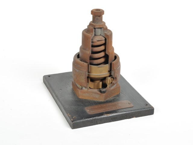 Dit onderdeel van de stoomlocomotief is op een staander gemonteerd. De helft is doorgesneden en toont de werking van het interne veermechanisme. De veiligheidsklep moest voorkomen dat de spanning van de stoom in de stoomketel de toegelaten druk zou overschrijden. De Coale-klep is van Amerikaanse herkomst en werd toegepast op de locomotieven type 38 (1D Consolidation) en type 40 (2C Ten Wheel).