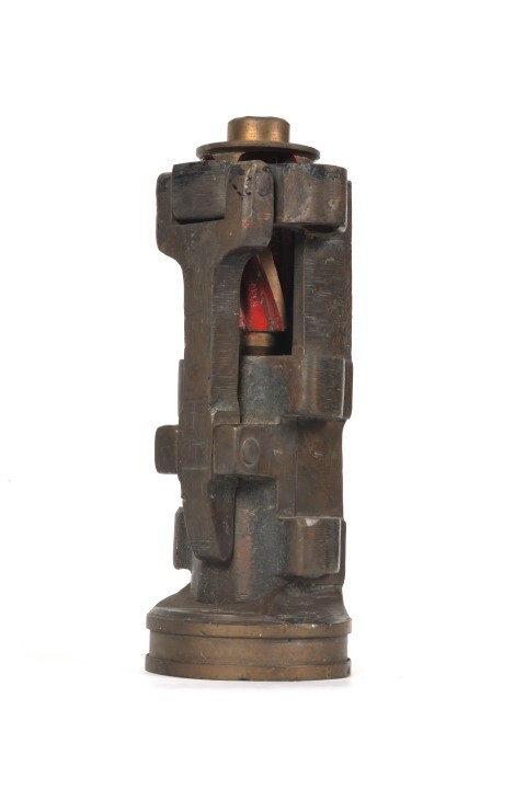 BeschrijvingDit onderdeel maakte deel uit van een stoomlocomotief. De doorsnede laat de werking van de binnenkant zien. Deze is rood geverfd.