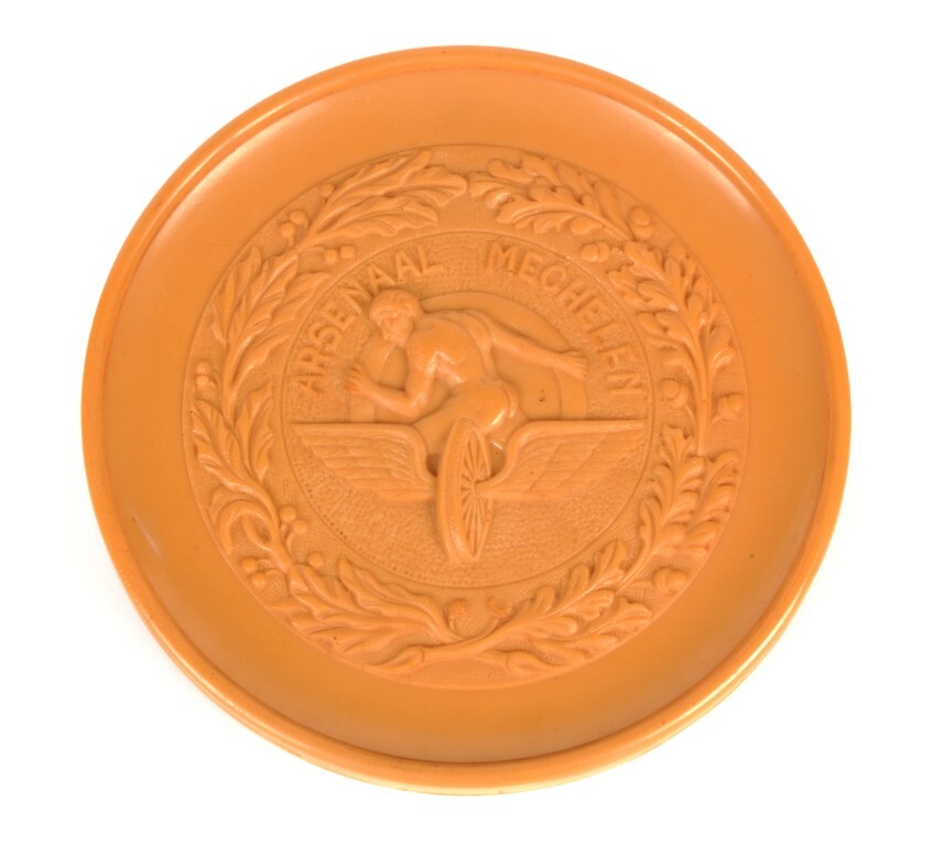 BeschrijvingOp de mal staat een afbeelding van een gevleugeld wiel en een man die een wiel vasthoudt. Daarboven het opschrift 'Arsenaal Mechelen'. Het geheel is omgeven door een lauwerkrans. Aan de achterzijde bevindt zich een gaatje.