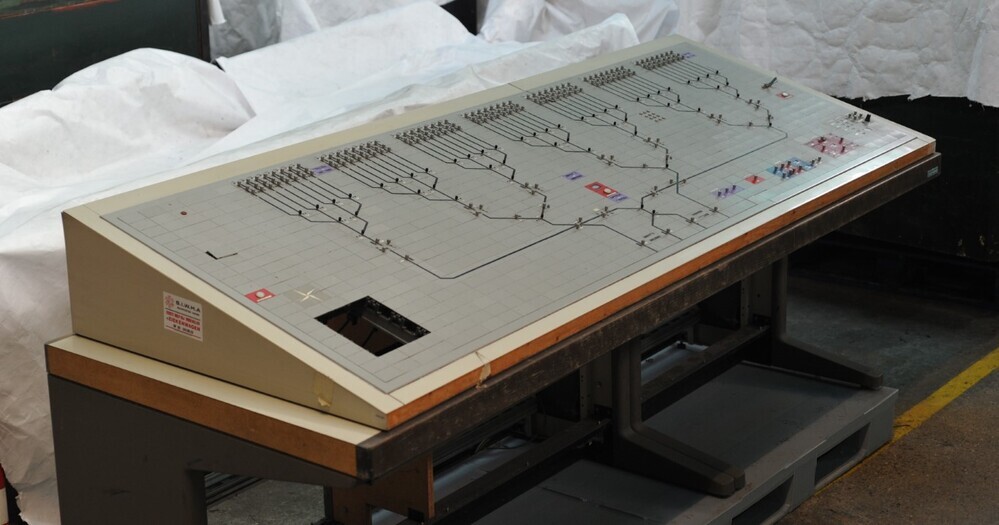 Het bedieningspaneel is gemonteerd in een tafel. De achterkant is open. Met dit paneel kunnen de sporen met nummers 209 tot 264 bediend worden. Onder de sporen staan verschillende types bedieningsknoppen en indicatoren, o.a. voor wissels, seinen, remmen, computers, verbruikers, etc... Links bevindt zich ook een windroos.