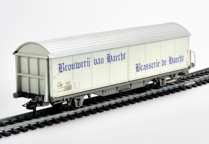 BeschrijvingSchaalmodel van een witte wagen met twee schuifdeuren langs beide zijkanten. Op de zijkanten staat de lettercode Hbis vxy en 'Brouwerij van Haecht Brasserie de Haecht'. De maquette werd op schaal H0 1/87 vervaardigd.