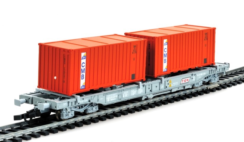 Deze platte wagen op draaistellen heeft lettercode Sdkmss. Bij de wagen horen twee oranje containers van 'CMB'. Op de zijkanten van de wagen staan verschillende opschriften, zoals het wagennummer 33 88 479 3 207-0 en het typenummer. De maquette is op schaal H0 1/87 vervaardigd.