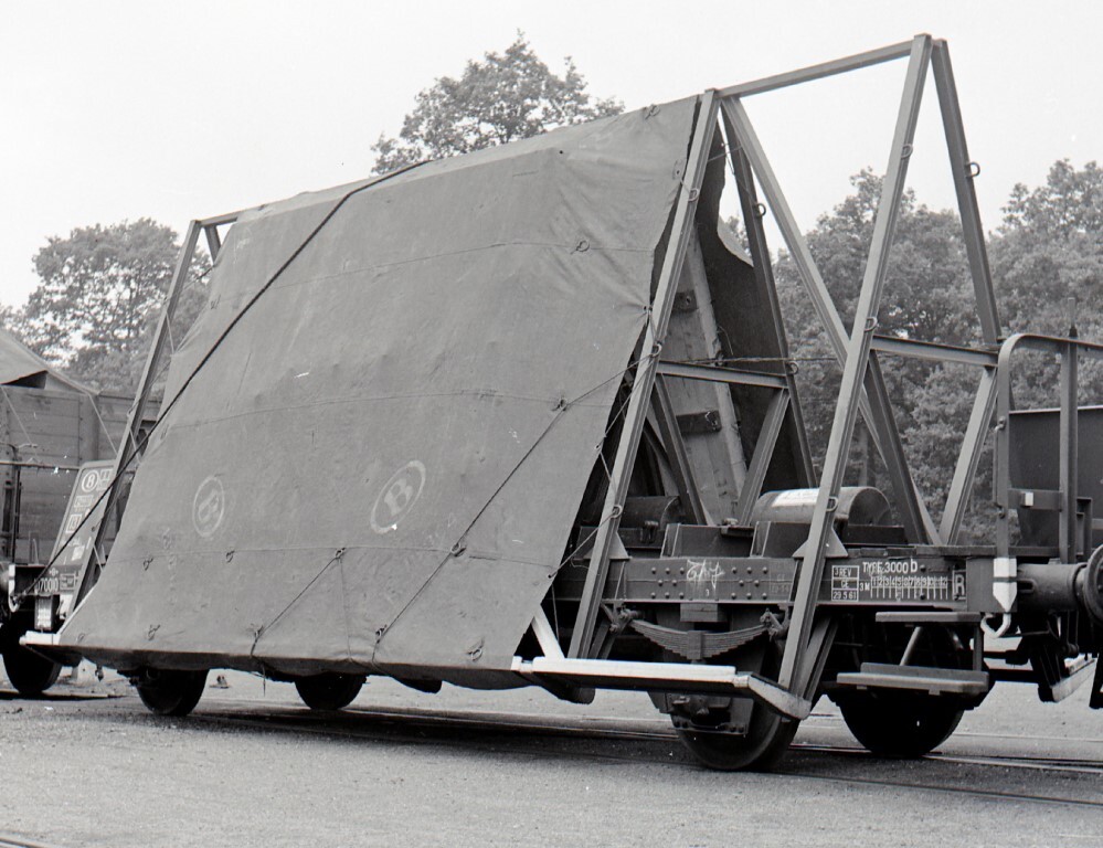 Deze fotogroep bevat drie negatieven. De foto's tonen schraagwagen nr. 1070010 type 3000 b op twee assen voor het vervoer van grote platen. Deze wagens zijn voorzien van twee schragen die in puntvorm op de wagenvloer gemonteerd staan. De platen kunnen langs beide zijden in schuine stand worden geplaatst en afgedekt worden met een zeildoek.