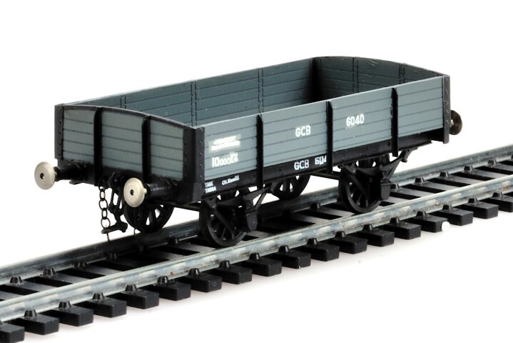 BeschrijvingGrijze open wagen van het type GCB. Op de zijkanten staan verschillende opschriften, zoals het wagennummer. De maquette is op schaal H0 1/87 vervaardigd.