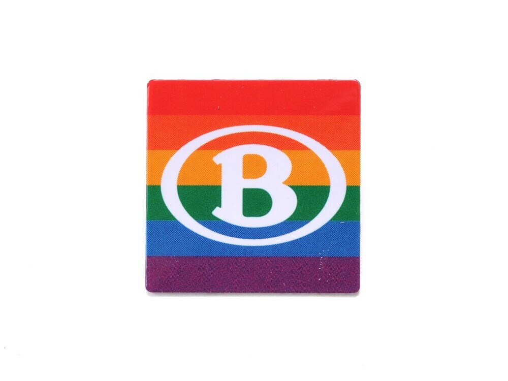 Deze vierkante pin heeft de kleuren van de regenboog met daarop in het wit het NMBS-logo. Ze werd door personeelsleden van NMBS gedragen tijdens de week van de Pride van 16 tot 22 mei 2022. Hiermee wilde men aantonen dat diversiteit belangrijk is binnen NMBS.