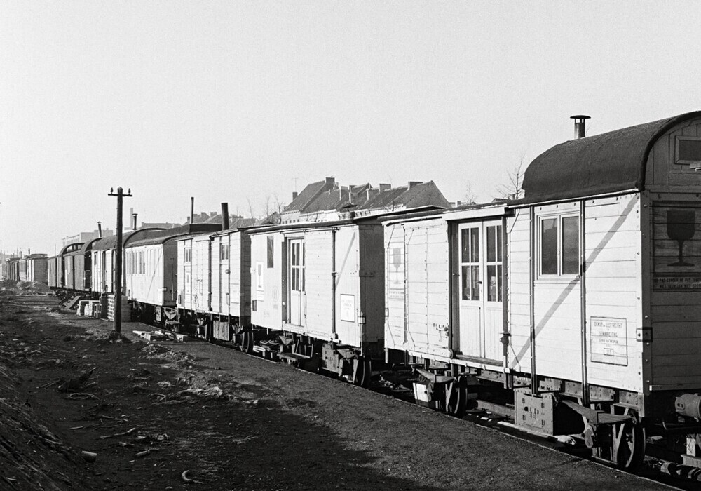 Deze fotogroep bevat drie negatieven. De foto's tonen een werktrein van de dienst bovenleiding en seininrichting die afgesteld staat op het wijkspoor in station Mechelen. Voor het merendeel dienen de wagens van deze werktrein voor de opslag van materiaal. In enkele wagens is er plaats voor burelen en schuilmogelijkheid voor het personeel.