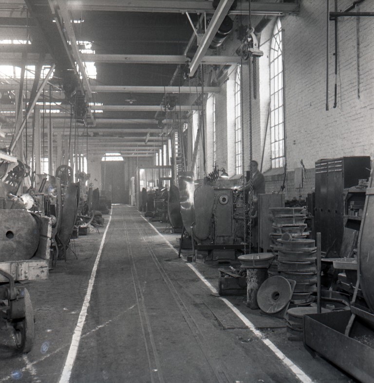 Deze fotogroep bestaat uit drie negatieven. Ze tonen de binnenzijde van de werkplaats die voor het herstel van goederenwagens instaat. In de werkplaats staan kolomboormachines en draaibanken opgesteld. Een gietijzeren kachel zorgt voor de verwarming van het atelier. Twee personeelsleden poseren voor de fotograaf.