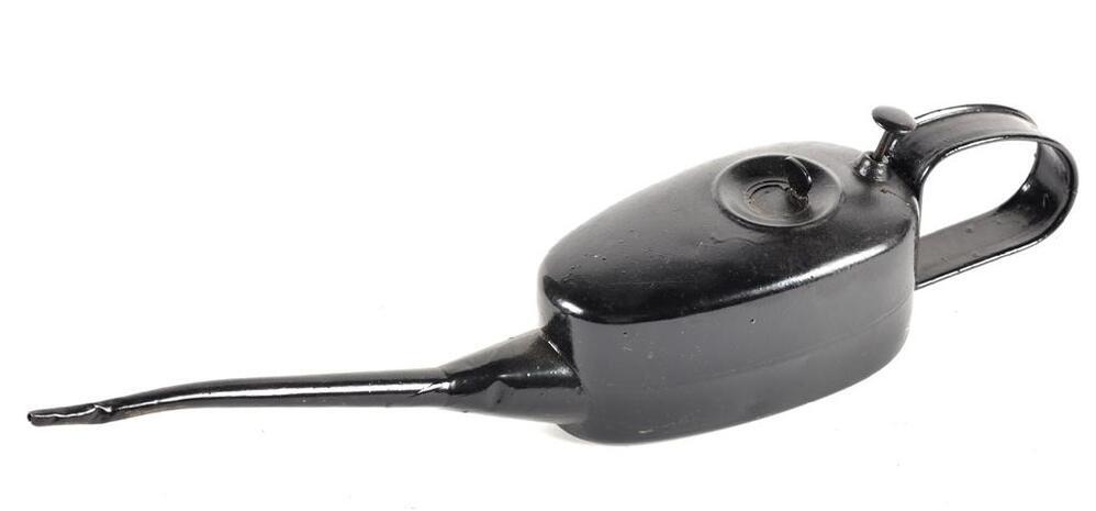 BeschrijvingZwarte oliespuit met lange tuit en groot handvat. De oliespuit kan bijgevuld worden door een klepje aan de bovenzijde. Op de bovenkant bevindt zich ook een pompje om de olie te spuiten.