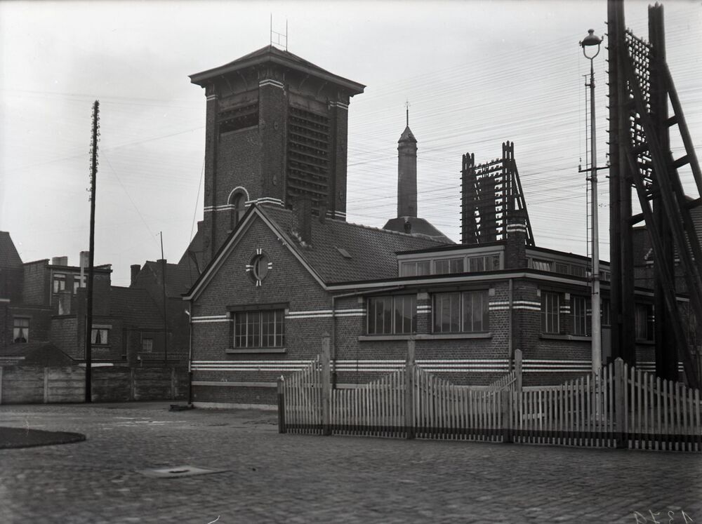 Deze fotogroep bevat twee glasplaten. Foto A toont de elektriciteitscabine van de Centrale Werkplaats Gentbrugge in 1939. Rechts staat een elektrische verlichtingspaal met typische armatuur. Op foto B zien we de ingangspoort aan de Brusselsesteenweg met links een mechanisch sein en een betonnen afsluiting tussen de werkplaats en het station Gentbrugge-Zuid (lijn 58 Gent – Eeklo – Brugge). In deze werkplaats, die geopend werd in 1881, werden voornamelijk goederenwagens gereviseerd en hersteld.