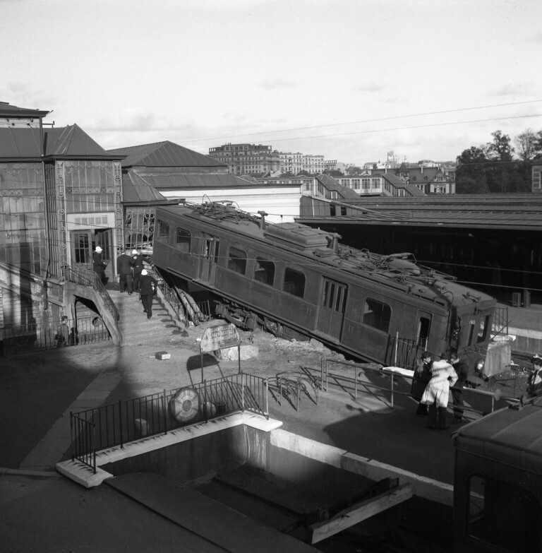 De fotogroep bestaat uit acht negatieven. De foto's tonen het ongeval met motorrijtuig 105 van de 'Société du Chemin de fer Electrique de Bruxelles à Tervueren' die spoorlijn 160 (Brussel-Leopoldswijk - Tervuren) uitbaatte. Door een defect aan de remmen boorde het rijtuig zich door het stootblok van het kopspoor, gleed over het perron en kwam in een hoek van 20° tot stilstand tegen een krantenkiosk. Er vielen tien gewonden, waarvan vier voor verzorging naar het ziekenhuis werden overgebracht.