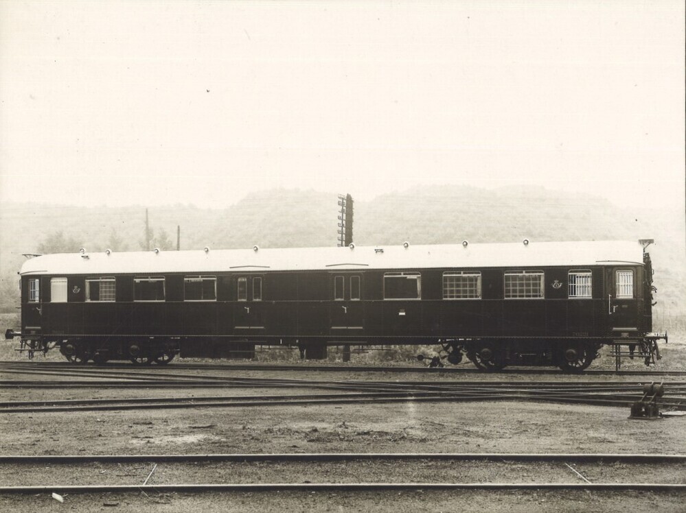 De foto toont de buitenzijde van postrijtuig 70221, dat als rijdend postkantoor werd ingezet op de lijn Brussel - Kortrijk in de jaren 1930. In dit rijtuig gebeurde de voorsortering van de post tijdens het vervoer. Het was speciaal voor dit doel ingericht. Het rijtuig werd vervaardigd door La Brugeoise et Nicaise & Delcuve. Schenking van Daniel Moyaerts.