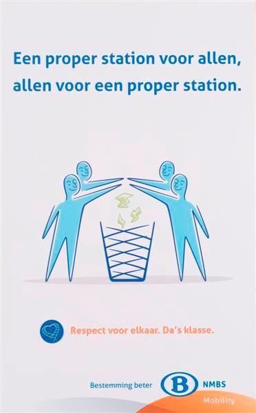'Een proper station voor allen, allen voor een proper station. Respect voor elkaar. Da's klasse.' (NMBS)