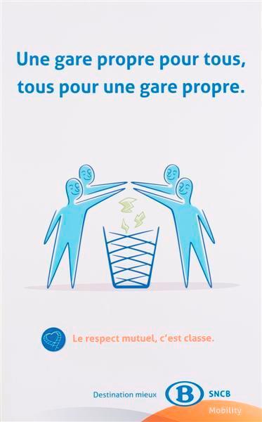 'Une gare propre pour tous, tous pour une gare propre. Le respect mutuel, c'est classe.' (NMBS)