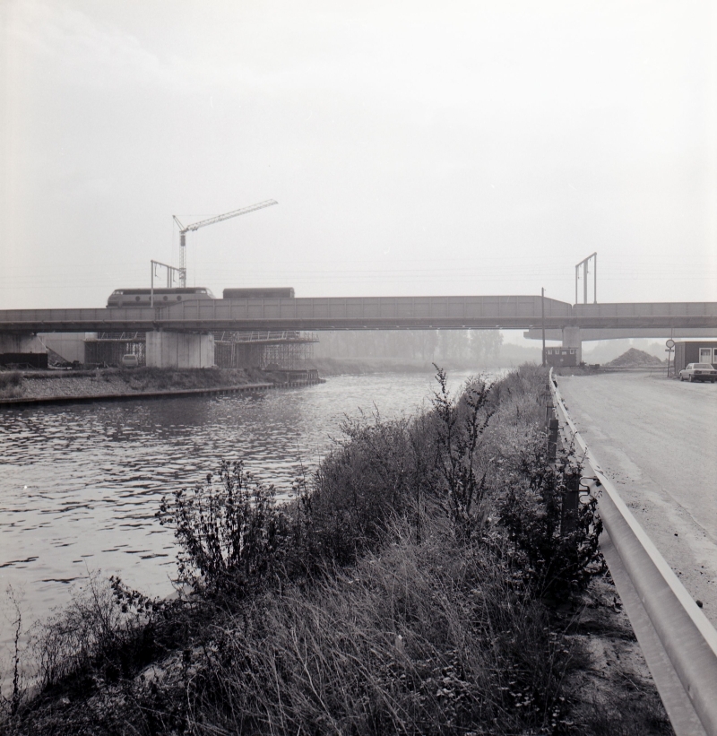 Deze fotogroep bevat vijf negatieven. De foto's tonen de nieuwe Scheldebrug in Oudenaarde. Ze werden genomen vanop de spoorbaan en vanop de beide oevers van de Schelde. Op foto A passeert een diesellocomotief van de reeks 62 met één goederenwagen over de brug.