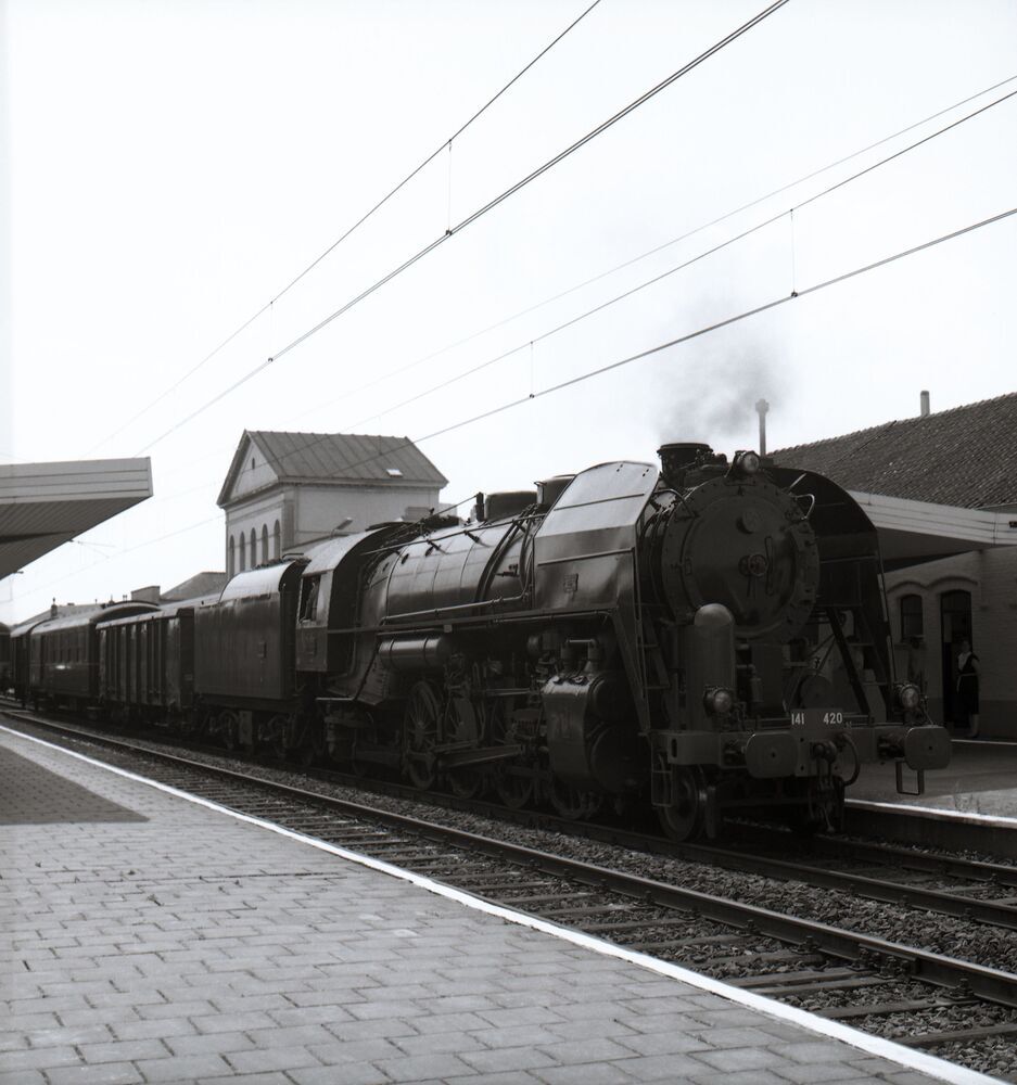 Deze fotogroep bevat 16 negatieven, waarvan elf in zwart/wit en vijf in kleur. De foto's tonen de Franse stoomlocomotief 141 R 420 in het station 's-Gravenbrakel. In het station was een stilstand voorzien voor nazicht van de locomotief en de trein. Op de kleurenfoto's zien we een spoorman, vermoedelijk de machinist of de stoker, bezig met het smeren van het drijfwerk. De trein was samengesteld uit een Frans reizigersrijtuig dat werd ingesloten door goederenwagens.