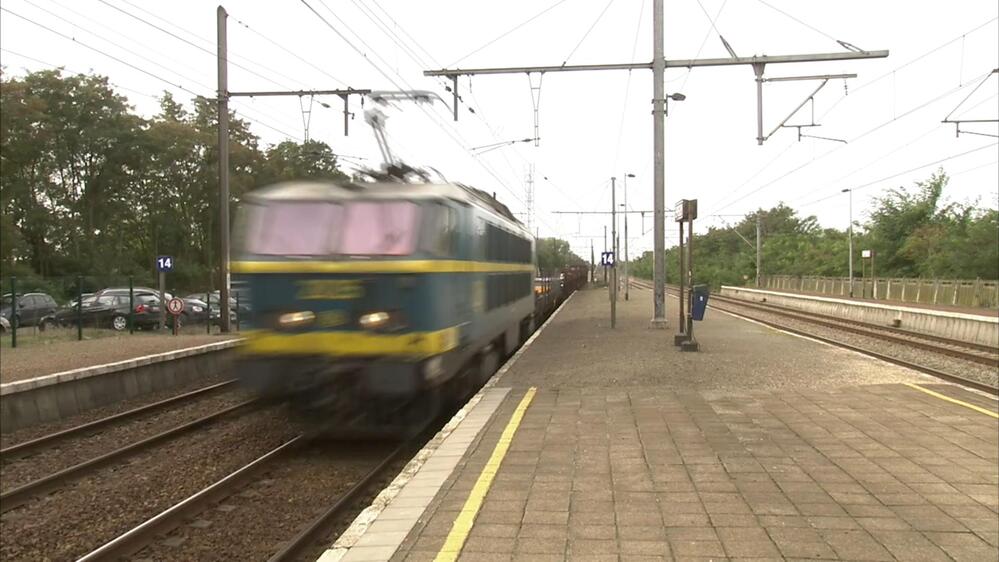 TitelElektrische locomotief reeks 20 met goederentrein in station Eppegem