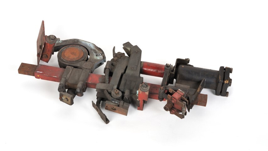 BeschrijvingDit metalen onderdeel maakte deel uit van een elektrische locomotief. De lijnschakelaar beveiligt de tractiemotoren en aanzetweerstanden door de te grote stroomsterkten af te schakelen.