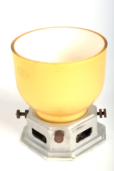 BeschrijvingDeze lamp verlichtte K 1- en L-rijtuigen van de NMBS. De lamp heeft een gele kop en een metalen voet. Op de zijkant van de kop staat het logo van de NMBS.