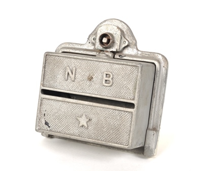 Metalen bakje met in het midden een gleuf, waarlangs het toiletpapier genomen kon worden. Deze houders werden gebruikt in metalen rijtuigen die in 1930 werden gebouwd voor de Compagnie du Nord–Belge, die deel uitmaakte van de Franse Compagnie des chemins de fer du Nord. Vanaf 1854 exploiteerden zij diverse spoorlijnen in Wallonië. In 1940 werd Nord-Belge officieel overgenomen door de NMBS, maar in praktijk werd het pas na de Tweede Wereldoorlog effectief geïntegreerd. Toen werden ook de metalen rijtuigen opgenomen in het wagenpark van de NMBS als het type N. Op toiletpapierhouder staat 'NB' (Nord Belge) en een ster.