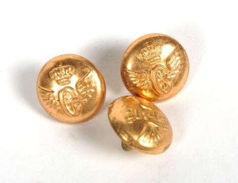 TitelGoudkleurige uniformknoop met een gevleugeld en gekroond wiel