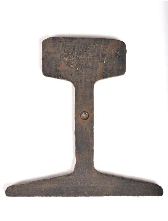 BeschrijvingDeze spoorstaaf met het zogenaamde 'Goliath'-profiel was erg zwaar en stijl. Hij werd van 1886 tot 1907 gebruikt voor drukke lijnen.