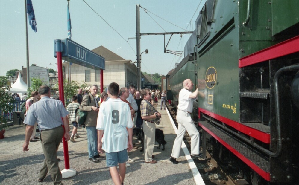 Deze fotogroep bevat 114 negatieven. Ter gelegenheid van 150 jaar spoorwegen te Hoei was er rollend materieel aanwezig met o.a. rangeerlocomotief 7710, elektrische locomotief 1504, motorstel 473 (reeks 1996) en stoomlocomotief 26.101 van de vereniging TSP. Er werd een lint geknipt, een fanfare speelde muziek, er werden toespraken gegeven en er was een kleine tentoonstelling in het station.