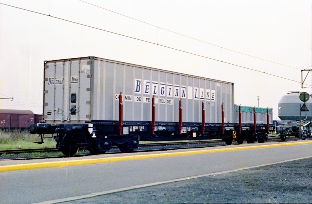 De foto toont wagen 31 88 390 1 236-2 op draaistellen voor het vervoer van containers. Op de zijwand staat het nummer, de lettercode Rs en het logo van NMBS. Een van de containers draagt het opschrift 'Belgian Line chemin de fer belges'. Deze wagen werd vervaardigd door de Centrale Werkplaats Gentbrugge.