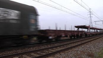 BeschrijvingEen elektrische locomotief reeks 28 (Traxx) sleept een goederentrein samengesteld uit lege wagens voor vervoer van auto’s en huifwagens.