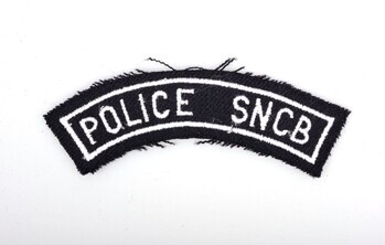 BeschrijvingHet insigne is zwart en boogvormig en kan op een uniform genaaid worden. Het opschrift 'Police SNCB' staat in witte letters op het insigne genaaid.