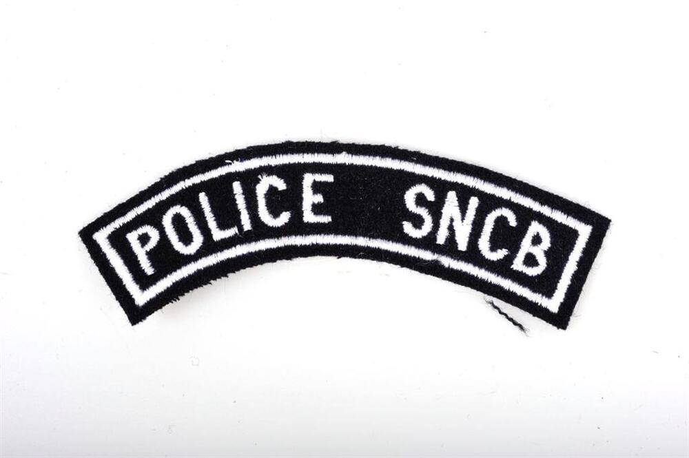 BeschrijvingHet insigne is zwart en boogvormig en kan op een uniform genaaid worden. Het opschrift 'Police SNCB' staat in witte letters op het insigne genaaid.