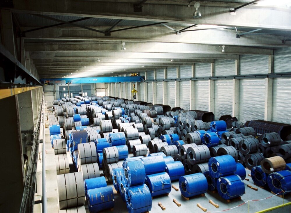 Deze fotogroep bevat 34 negatieven. Ze tonen een opslagplaats te Châtelet voor rollen staalplaat. De rollen worden met behulp van een katrolsysteem geladen op platte wagens met telescopische huiven. De katrol wordt van op een afstand bediend door een technieker.