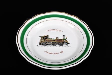 Wit bord met groene rand, 2 gouden biezen en een afbeelding van de 'Anideto'. Naast de afbeelding bevinden er zich nog enkele opschriften: 'la "Anideto"- Italia- 1873' en '"Le chemin de fer"'. Dit bord maakte deel uit van een Frans servies met als thema bekende locomotieven. De Anideto was een Italiaanse stoomlocomotief, gebouwd in 1873.