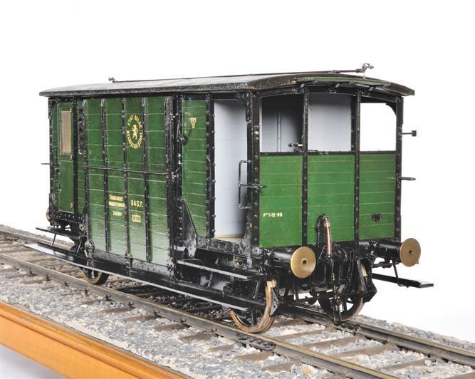 Dit type wagen werd ook wel boxwagen genoemd. Hij woog 13 ton en werd in 1908 gebouwd voor de Belgische Staatsspoorwegen. De wagen heeft een verlaagde vloer en werd gebruikt om drie paarden te vervoeren. Er is ook een kleine afdeling voor de begeleiders voorzien. De wagen had een verwarming met stoom, een gasverlichting en eveneens Westinghouse automatische remmen. De zijkant kon geopend worden en diende als oplaadvloer. De maquette is gemaakt op schaal 1/10.