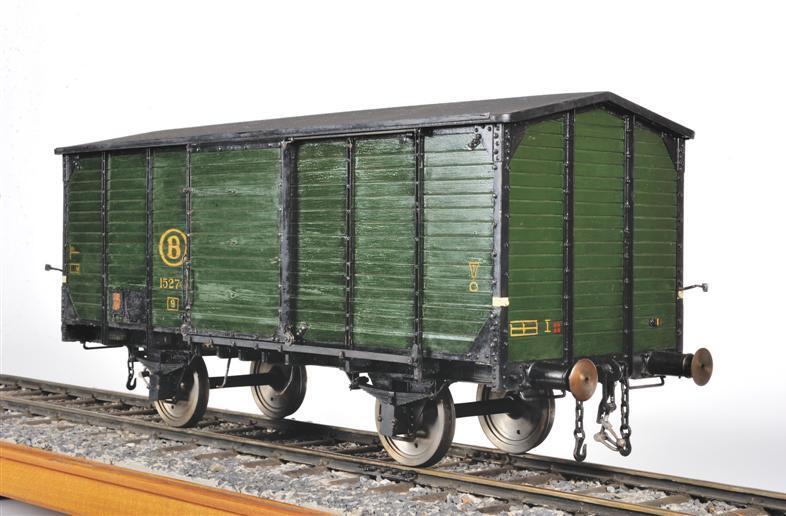 Deze gesloten wagen van het type 2511 werd in 1908 voor de Belgische Staatsspoorwegen gebouwd. De wagen woog 15 ton en was bestemd voor het vervoer van goederen die niet bestand waren tegen vocht. In 1956 veranderde het identificatienummer van 152.741 naar 4414014 en in 1965 kreeg hij een UIC-nummer.De maquette is gemaakt op schaal 1/10.