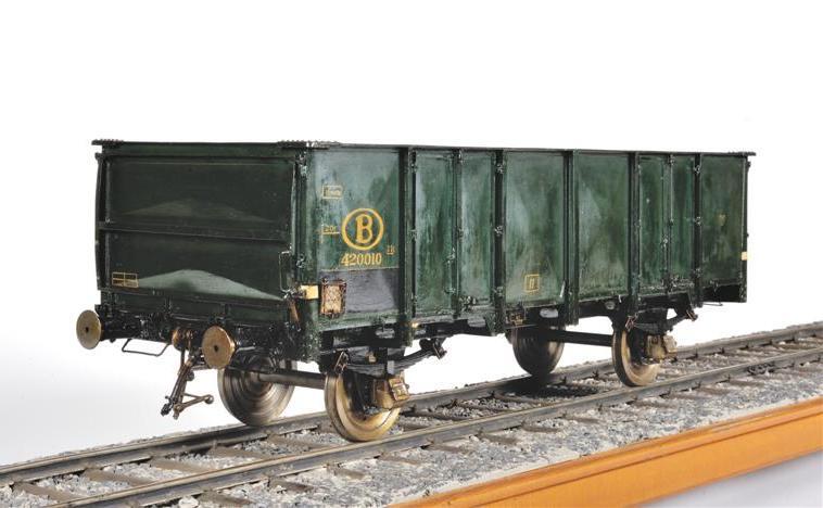 Deze wagen van het type 1214B van de NMBS werd gebruikt voor het vervoer van goederen die tegen vocht bestand zijn. Deze wagen kon tot 25 ton vervoeren en werd gebouwd in 1947-1948. De wagen heeft aan beide zijden deuren om de goederen gemakkelijk uit te storten. De maquette is gemaakt op schaal 1/10.