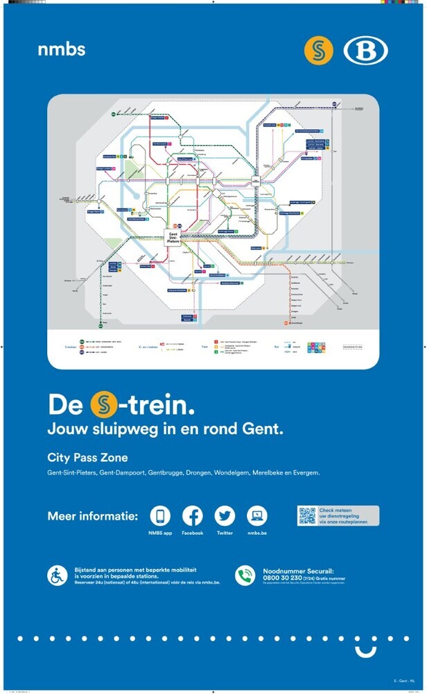 Titel'De S-trein. Jouw sluipweg in en rond Gent.' (NMBS)