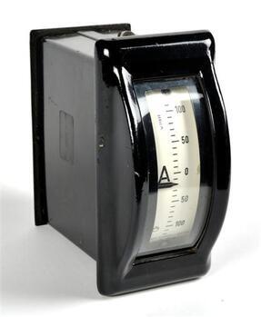 BeschrijvingDeze ampèremeter bevindt zich in een zwarte metalen doos en heeft een rollende wijzerplaat met indicator. Hij werd gebruikt om elektrische stroom te meten. De ampèremeter is afkomstig van de Nederlandse spoorwegen.