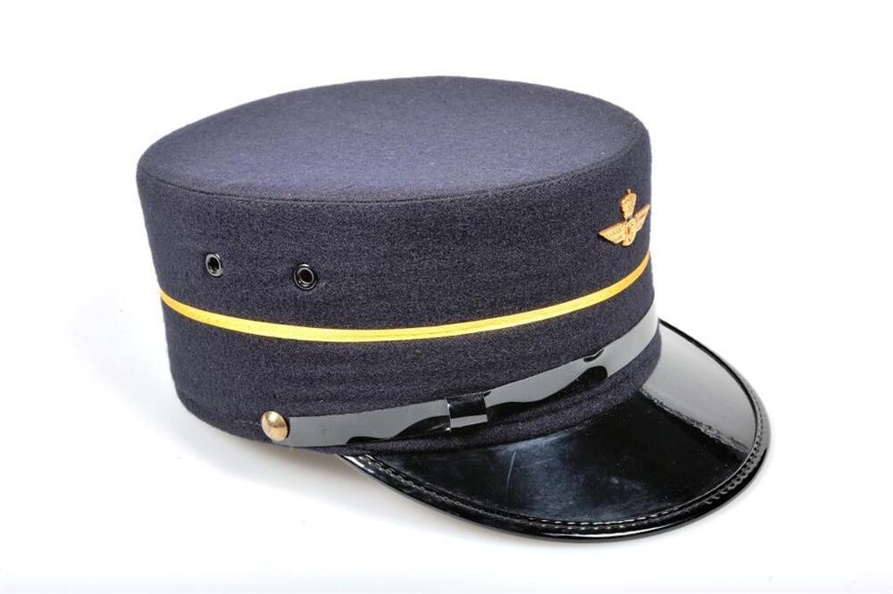 Zwarte kepie met een zwarte klep in kunststof. De stormband is van kunststof en vastgemaakt met twee metalen knopen. Er loop een gele bies op 4 cm boven de rand. Aan de voorkant werd een spoorweginsigne bevestigd. De kepie is verstevigd met een leren band en de voering is donkerblauw.