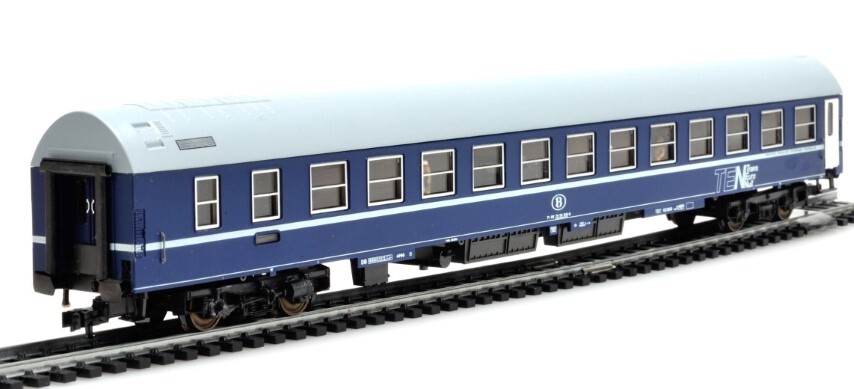 De Trans Euro Nacht (TEN) is de nachtelijke tegenhanger van de TEE en kan met een rijdend hotel vergeleken worden. In 1995 werden deze dienst beëindigd en werden de rijtuigen bij de diverse deelnemende spoorwegmaatschappijen ondergebracht. Dit is een schaalmodel van het slaaprijtuig, type MU, dat door de NMBS werd overgenomen. Het dak is in een andere blauwe tint dan de rest van het rijtuig geschilderd. Op de zijkanten staan verschillende opschriften, zoals het rijtuignummer en het logo van de NMBS. De maquette werd op schaal H0 1/87 vervaardigd.