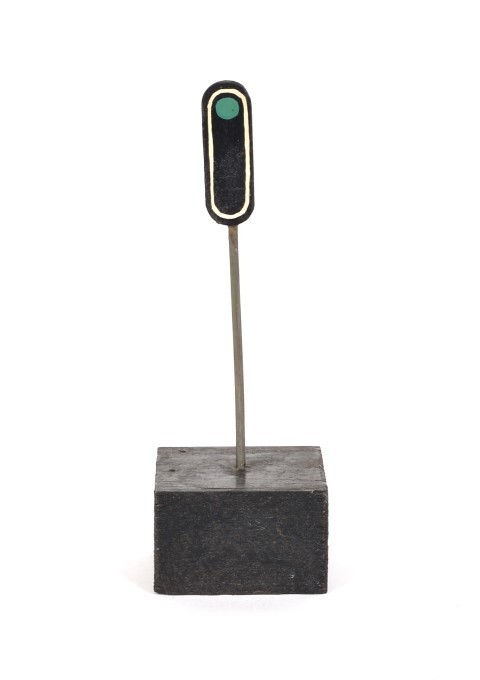 Dit schaalmodel werd in de jaren 1960 gebruikt als didactisch materiaal bij de opleiding van treinbestuurders. De maquette bestaat uit een langwerpige zwarte rechthoek met afgeronde hoeken en een witte rand. Bovenaan brandt er een groen licht. In deze stand mag de machinist doorrijden aan een normale snelheid.