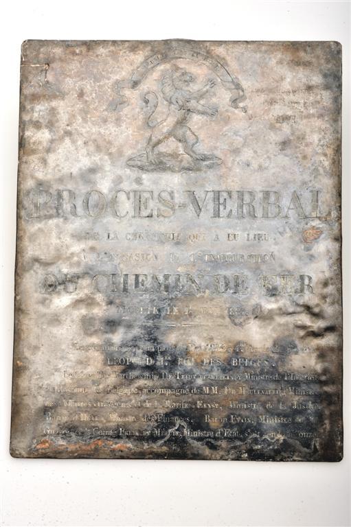 Dit is een proces-verbaal van de plechtige inwijding van de spoorlijn Brussel-Mechelen op 5 mei 1835, gegraveerd op 5 tinnen platen. Een proces-verbaal is een akte waarbij een bevoegde functionaris verslag doet van een gebeurtenis. De platen werden samen met enkele munten in een loden kistje bewaard. Het geheel werd in 1957 opgegraven tijdens de verplaatsing van De Mijlpaal (gedenkzuil te Mechelen opgericht op 5 mei 1835).