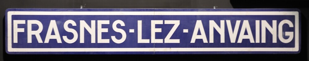 Een stationsnaambord is een blauw bord waarop de stationsnaam in witte letters wordt vermeld. Het bevindt zich op een perron zodat reizigers vanuit de trein duidelijk kunnen zien in welk station ze aankomen. Dit exemplaar bestaat uit twee metalen platen die aan elkaar gemonteerd zijn.