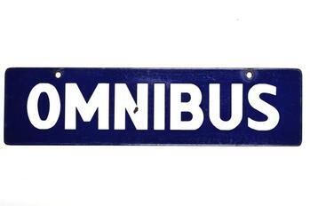 BeschrijvingBlauw bord met witte letters. Werd aan een treinaankondiger gehangen om een omnibus aan te kondigen.