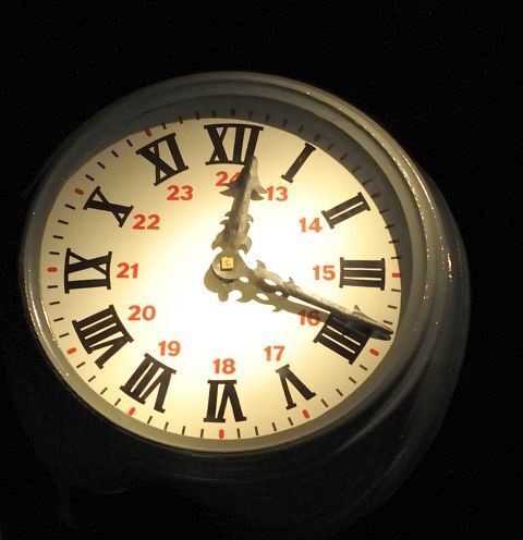 Deze groene stationsklok heeft aan twee kanten een wijzerplaat met sierlijke metalen wijzers. De derde zijde van de klok werd vastgemaakt aan de muur. De wijzerplaten bevatten zwarte Romeinse cijfers van I tot en met XII en rode Arabische cijfers van 13 tot en met 24. In 1892 beslisten de spoorwegen om de tijdsaanduiding volgens de internationale standaardtijd te laten gebeuren. Deze standaardtijd (Greenwich- of spoortijd) verdeelde de dag in 24 uur, in plaats van twee keer 12. De aanduidingen M (morgen) en A (avond) konden zo achterwege gelaten worden.
