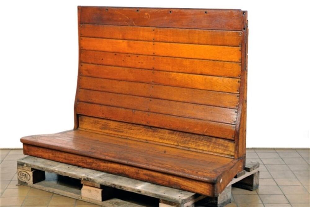 BeschrijvingDeze bank stond in het derde klascompartiment. Het zitvlak en de rugleuning zijn gemaakt van houten latten uit teakhout. Het onderstel en bagagerek ontbreken.