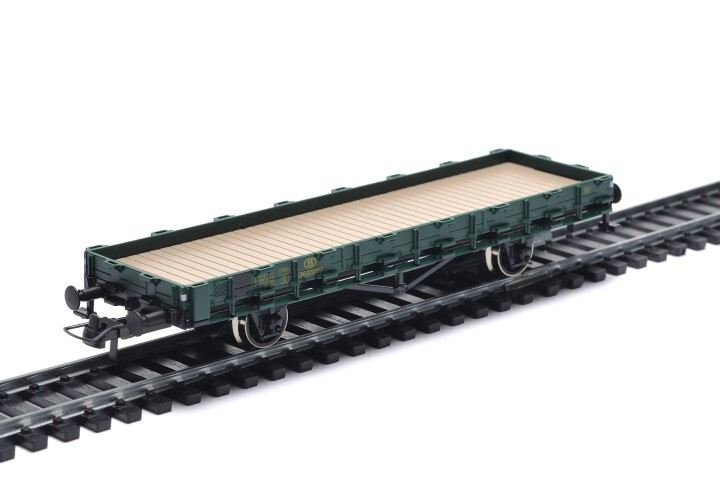 BeschrijvingGroene platte wagen op twee assen van het type Ks. Op de zijkanten staan verschillende opschriften, zoals het identificatienummer en het logo van de NMBS. De maquette is op schaal H0 1/87 vervaardigd.