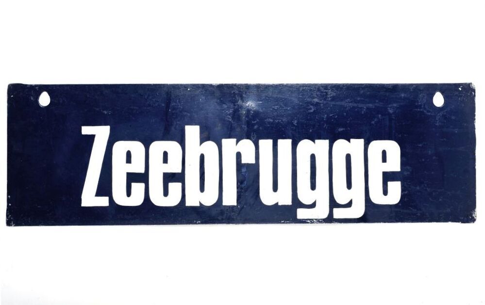 BeschrijvingBlauw bord met witte letters. Werd aan een treinaankondiger gehangen om treinen richting Zeebrugge aan te kondigen.