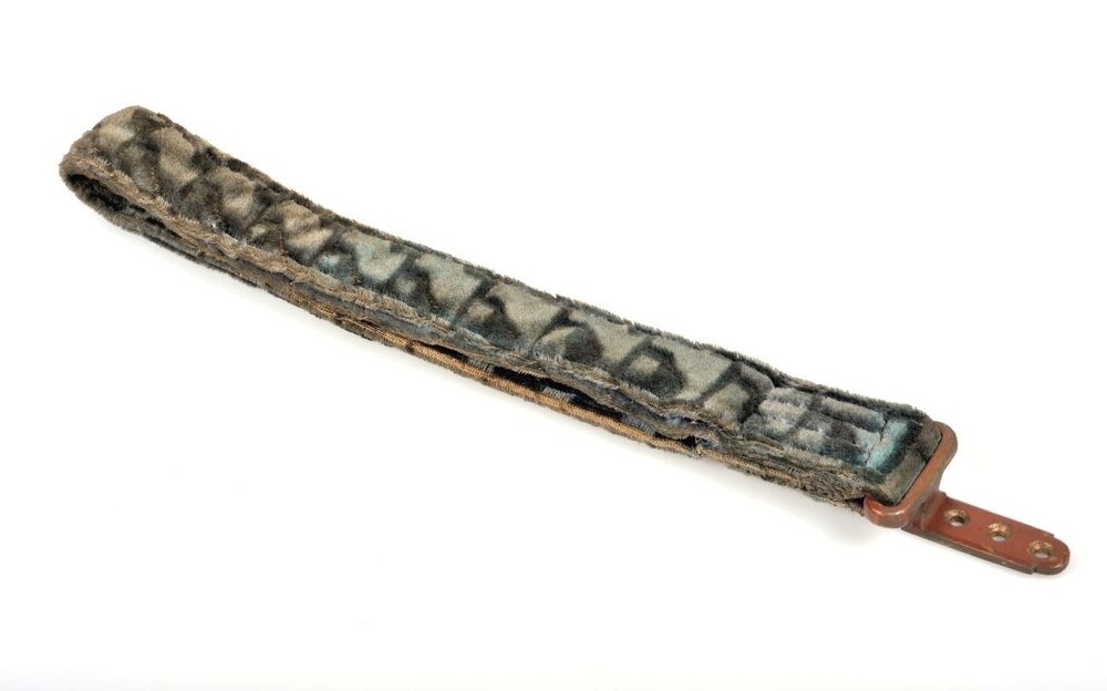 BeschrijvingDe gordijnophouder bestaat uit een lus van blauwe dikke stof die aan de muur kan bevestigd worden d.m.v. een metalen bevestigingsstuk. Dit type gordijnophouders werd gebruikt in een GCI-rijtuig ABD in eerste of tweede klas.