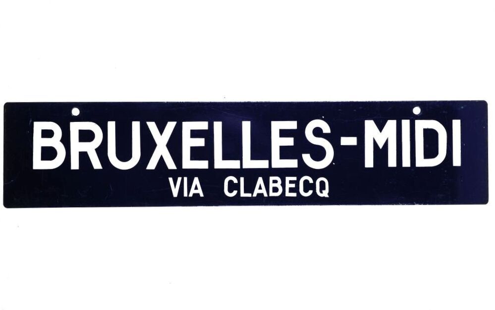 BeschrijvingBlauw bord met witte letters. Werd aan een treinaankondiger gehangen om treinen richting Brussel-Zuid via Clabecq aan te kondigen.