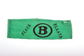 BeschrijvingOp de mouwband staat naast het logo 'place' en 'plaats' gedrukt.